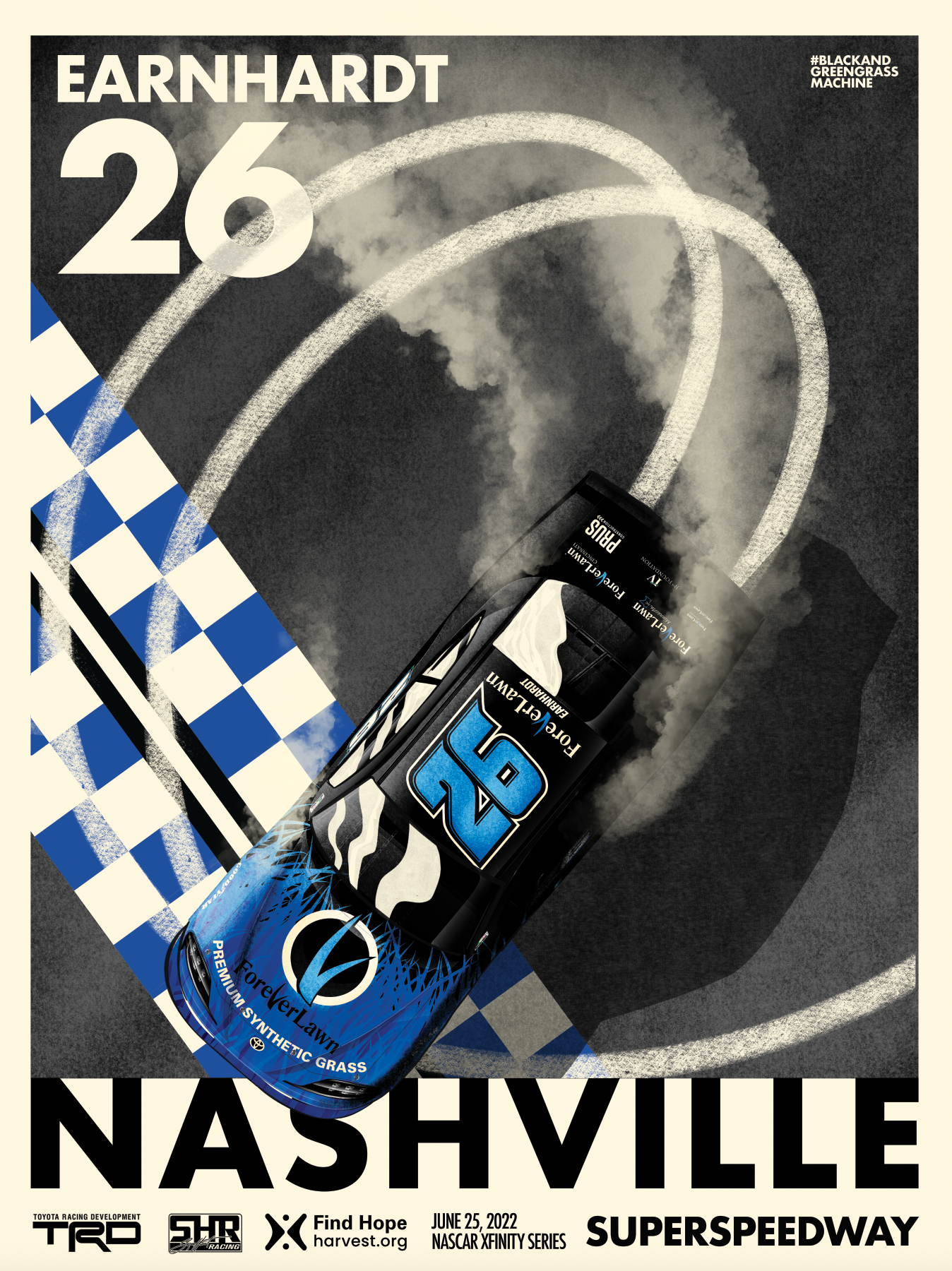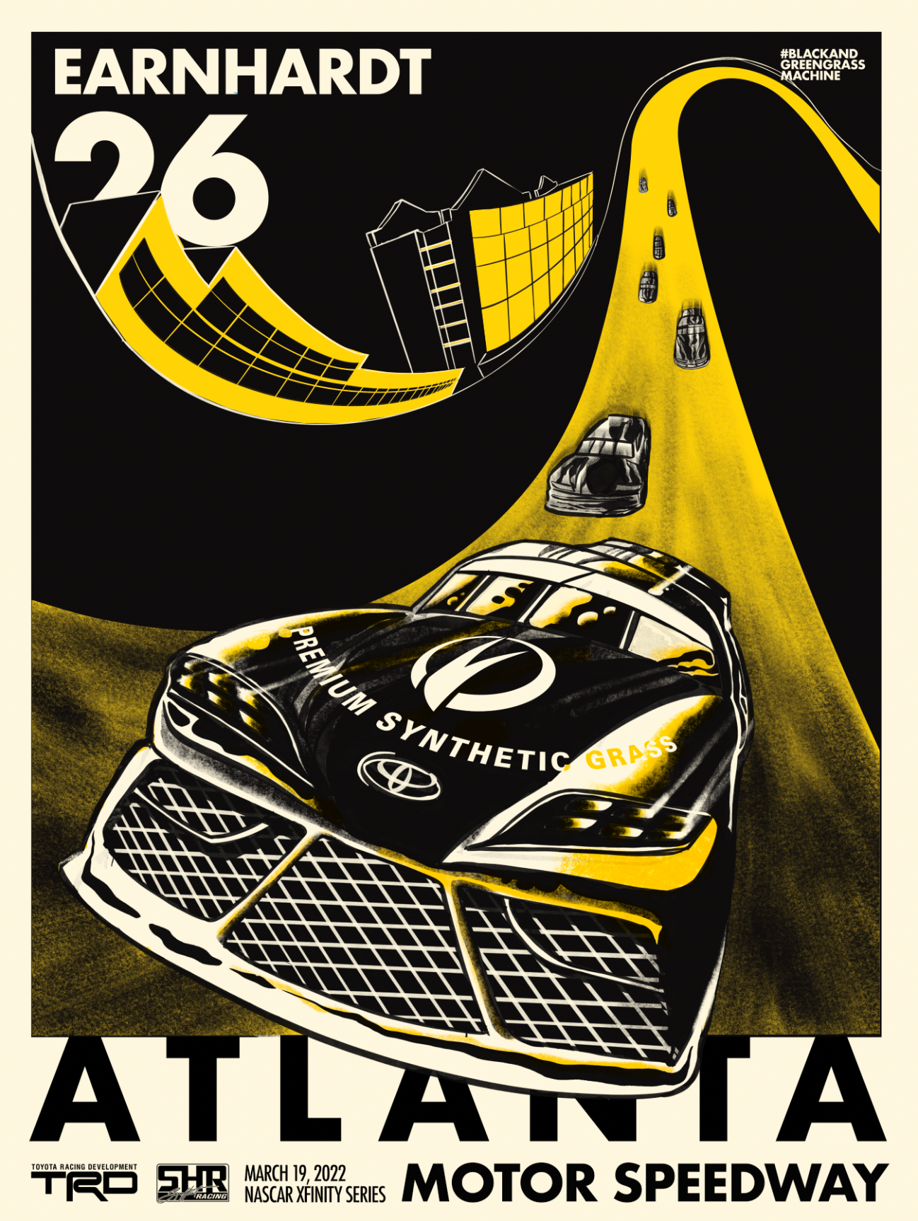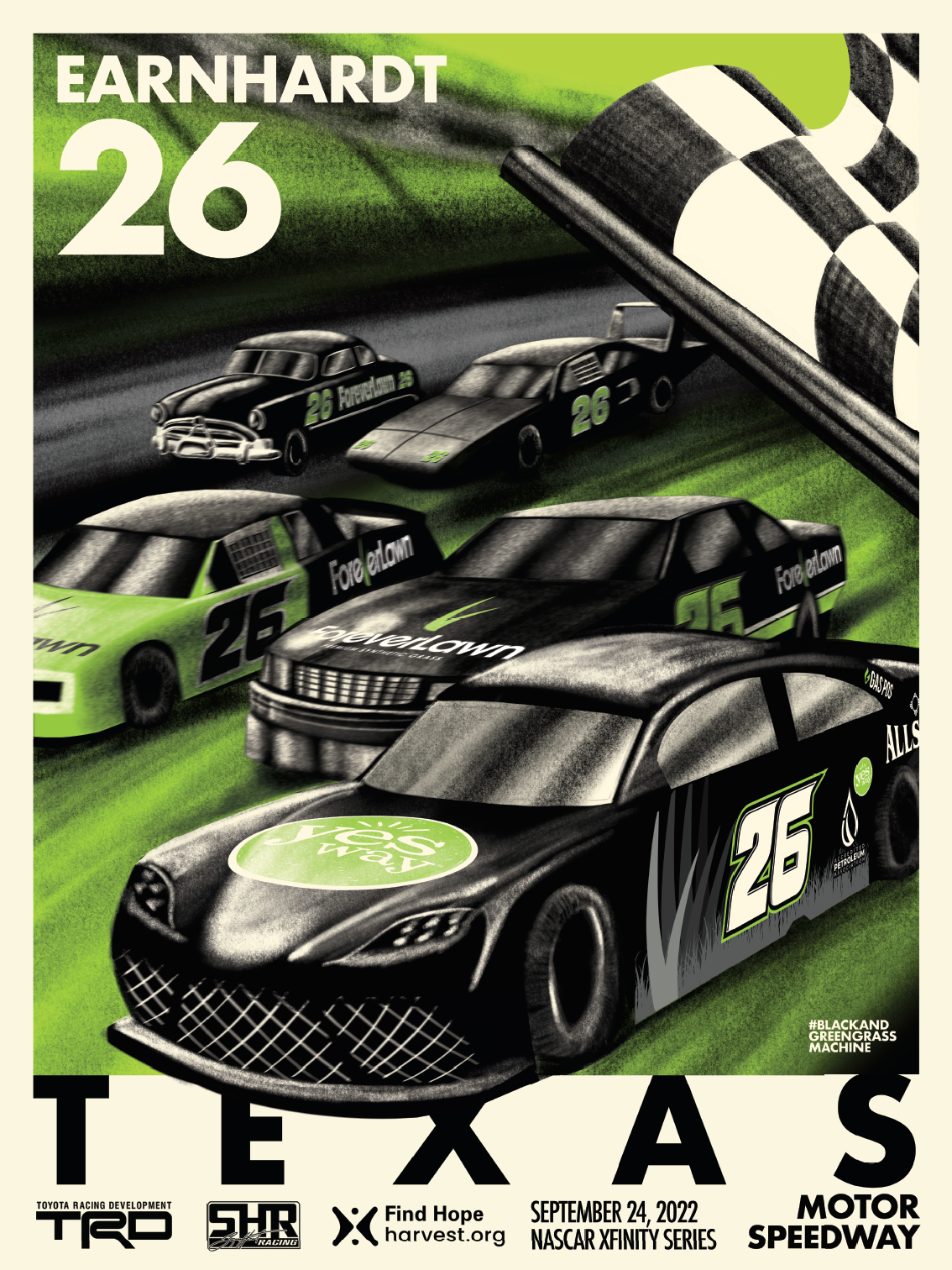 SOLUTION: To build out the story of racing as seen through the eyes of Jeffrey Earnhardt, with a series of illustrated posters, hero cards, and apparel, that celebrate both racing history and Earnhardt's current racing endeavors.